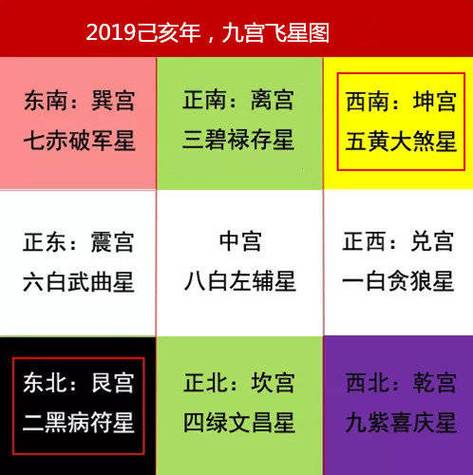 2019年“东南方”代表财富和事业的宫位被破坏,容易导致事业停滞或资金短缺。对那些正处于创业或投资阶段的人来说,这一年尤其需要谨慎。特别是与“财运”相关的事务,要防止因外部因素或合作关系带来的破财风险。与此“正北方”代表健康的宫位也处于不利状态,提醒人们在这一年要特别关注自己的健康,避免过度劳累和不良习惯。