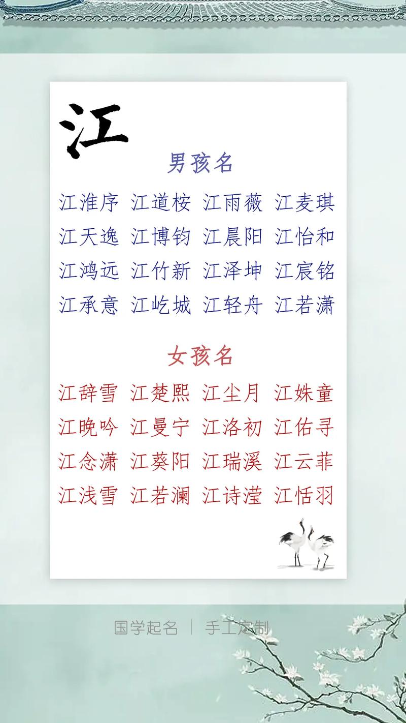 “江”字本义为“大河”,象征着浩瀚与宽广。作为名字中的一部分,“江”字常被赋予力量、包容和深远的寓意。在姓名学中,江字的出现常常意味着个体具有开阔的视野和较强的综合能力,但具体的吉凶还需结合个人八字来详细分析。