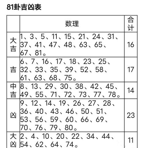 在传统文化中,数字不仅仅是计算工具,更被赋予了独特的吉凶寓意。比如,数字“8”常被视为吉利的象征,代表着财富和成功;而数字“4”则常与不幸和失败联系在一起。这种数字与命运的关联,源于古老的哲学观念和文化传承。在数字吉凶的世界里,每个数字都有其独特的象征意义,这不仅反映了文化的深度,也展现了对命运的深刻洞察。