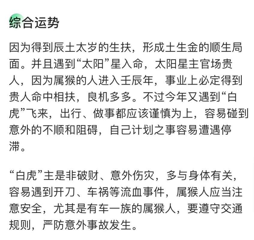今日属猴者运势平稳,事业顺利,财运较佳。宜积极进取,把握机会。但需注意小人暗害,谨慎行事。