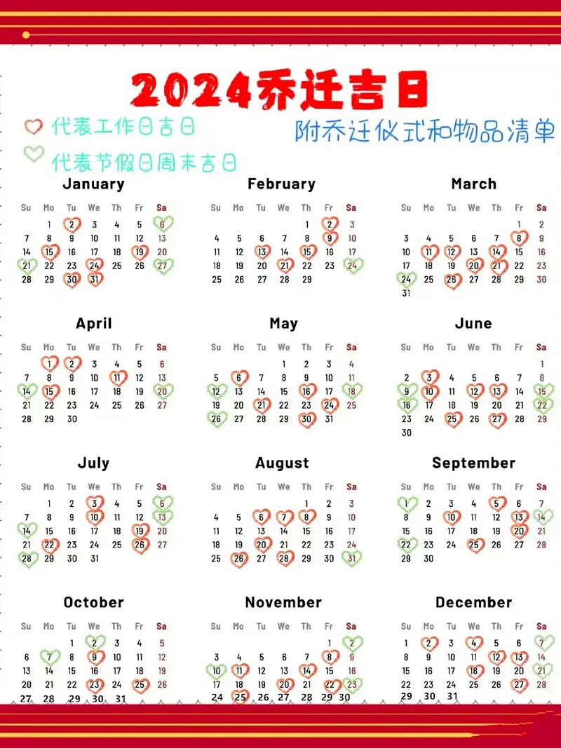 吉日推算:庚申日柱与乙酉年命相合,2024年甲辰年与甲戌日支相合。因此,2024年适合搬家入宅的吉日包括: